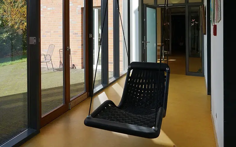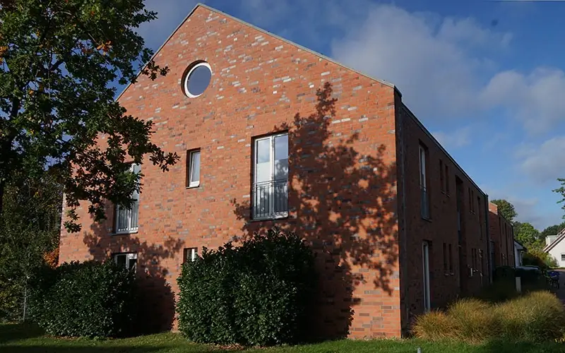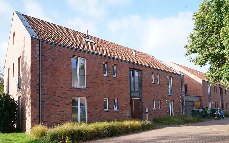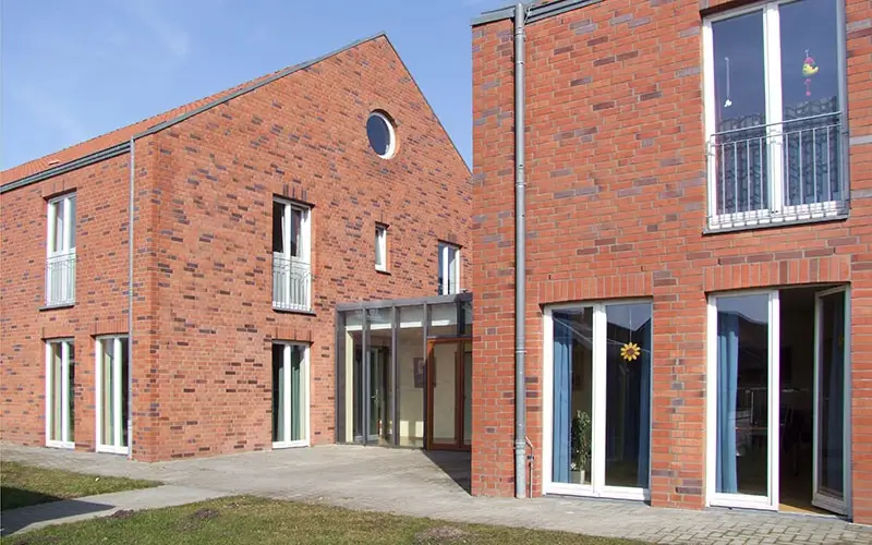 Mit dem Einzug hier sollte sich viel verändern. In jedem Haus leben acht Menschen. Jeder Bewohner hat sein eigenes Zimmer. Die Häuser sind selbst-verständlich rollstuhl-gerecht gebaut. Sie liegen in einem Neubau-Gebiet in Richtung Wyler. Der Orts-Kern von Kranenburg ist zu Fuß in etwa 10 Minuten zu erreichen.