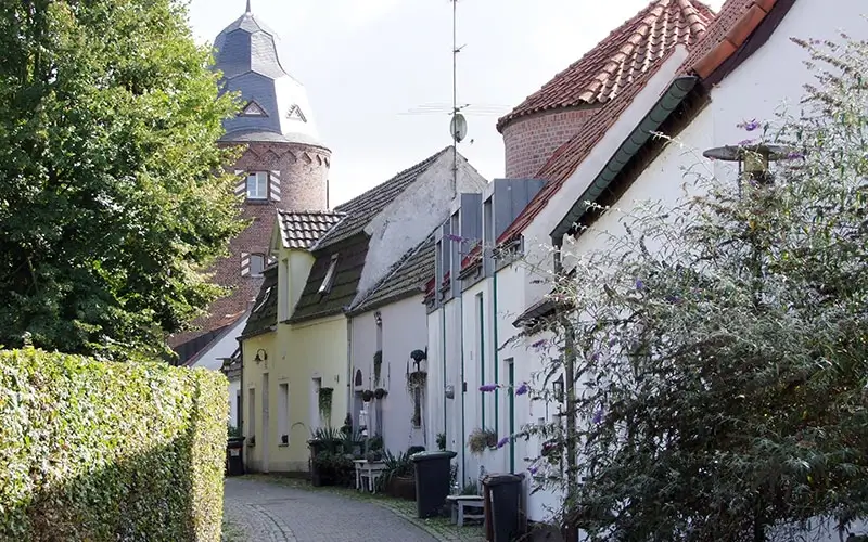 Außerdem: Die Wanderstraße liegt im Kern von Kranenburg. Sie ist sehr alt und schön anzuschauen. Es fahren dort weniger Autos, deshalb ist es schön ruhig. Man kann auch schnell die Geschäfte in Kranenburg erreichen oder in den nahen Park gehen.